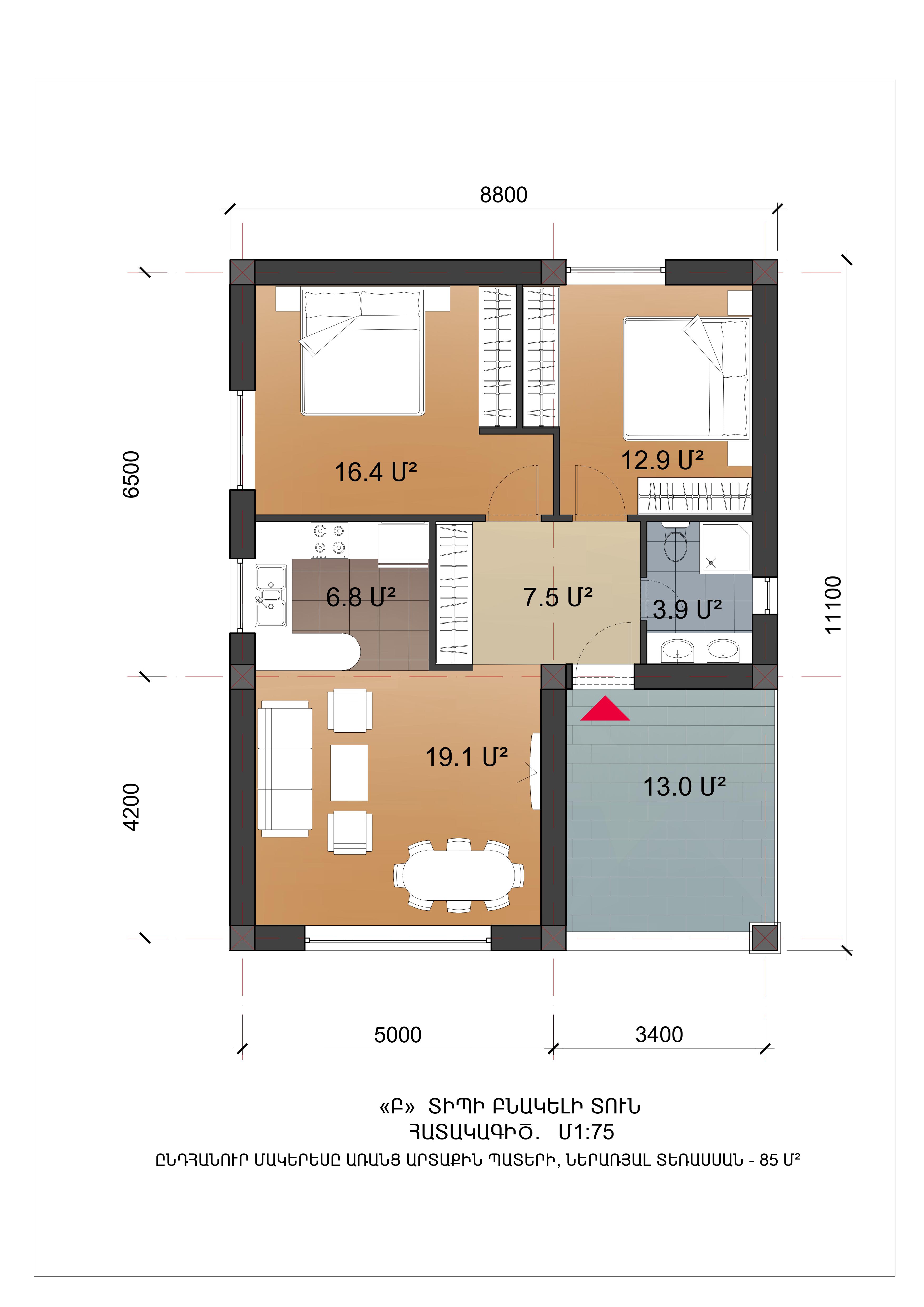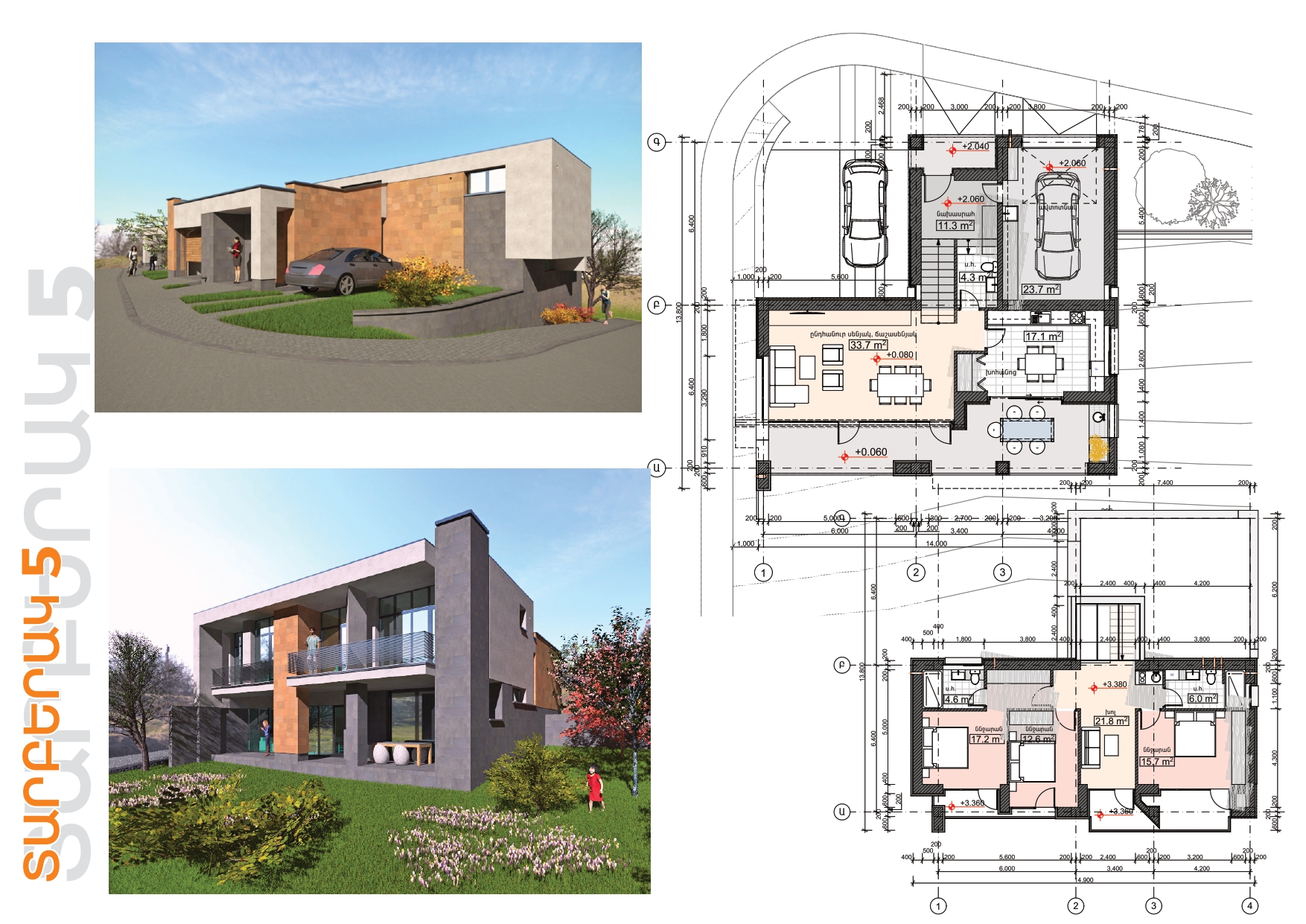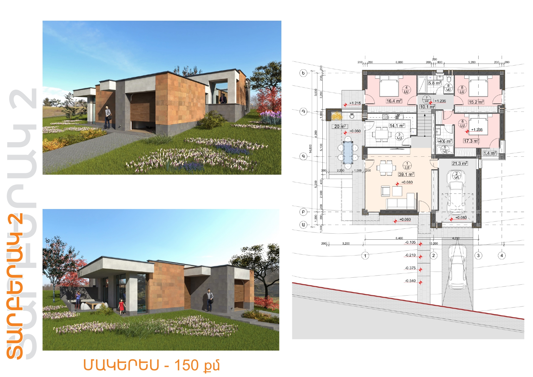 Ձեր ընտրությանն ենք ներկայացնում 130-200քմ ընդանուր մակերեսով, 490 քմ և ավելի հողամասերով և կանաչապատ բակերով առանձնատների 5 տիպային նախագիծ։ Ժամանակակից, էրգոնոմիկ լուծումներով միահարկ և երկհարկանի առանձնատների նախագծերը գրավիչ են իրենց ճարտարապետական հորինվածքով և բնակելի սենյակների դասավորությամբ, որտեղ լայն պատուհաններից ներս է թափանցում շրջակա բնությունը: Պարզ նրբագեղությանը տիրույթը, կարծես, լույս և մաքուր օդ է կլանում, այն ազատ է «տեսողականը աղմուկից»։ Արտաքին և ներքին հարդարման համար ընտրված է զուսպ ներկապնակը, առավելագույնը՝ երկու-երեք գույն, որոնք ձեր ցանկությամբ կհամադրվեն որևէ վառ գույնով՝ միջավայրը դարձնելով տարբերվող և առավել հոգեհարազատ: